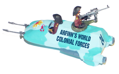 Colonial troopers are armed with cone rifles. They do not wear body armor or use jetpacks. Some colonies can afford to equip their militia units with grav vehicles; others may provide scouts with grav-sleds or tracked vehicles.