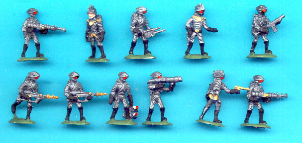 Eli raiders are armed with heavy laser rifles, blast rifles, and whatever exotic weapons they can steal. They wear strange, baroque armor and are jump trained.
