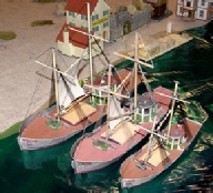 The THOR is a small motorship or cargo lighter and is typical of many such workhorses of the sea which ply the intercoastal trade of Europe and Great Britain. This charming little ship comes with a sheet of alternate name plates, two winches, deck cargo, searchlights, lug sail, and interior detail in the cabin. Now available with cast metal anchors, winches, and fittings. In full color.