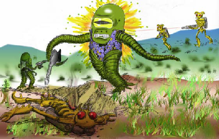 Terellian soldiers generally lead units of alien mercenaries -- usually Orilla or Robots -- into battle. These officers usually arm themselves with blasters or needlers.