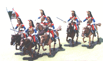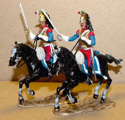 The elite Tulancingo Cuirassiers were a heavy cavalry unit which fought at Angostura, Cerro Gordo, Churubusko, and the battles for the Valley of Mexico. Their ornate uniform was based on French Napoleonic Cuirassiers. Their coats were dark blue, trousers were red with a blue stripe. They wore bronze cuirasses and helmets.