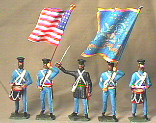 Reviresco’s U.S. Infantry Color Party kit contains one officer, two drummers and two standard bearers with printed paper U.S. Flag and Regimental Flag.